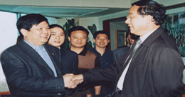 全國政協(xié)副主席、中共中央委員、中國殘聯(lián)主席鄧樸方先生與鄭州臺州商會支部書記兼秘書長、《百花散》傳人梅安富先生親切交談鄭州市腫瘤康復協(xié)會名譽會長。2005年5月,作為臺州古代中醫(yī)秘方梅氏《百花散》
