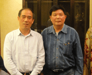 中國抗癌協(xié)會常務理事、河南省抗癌協(xié)會會長楊文獻教授和《百花散》傳人梅先生合影